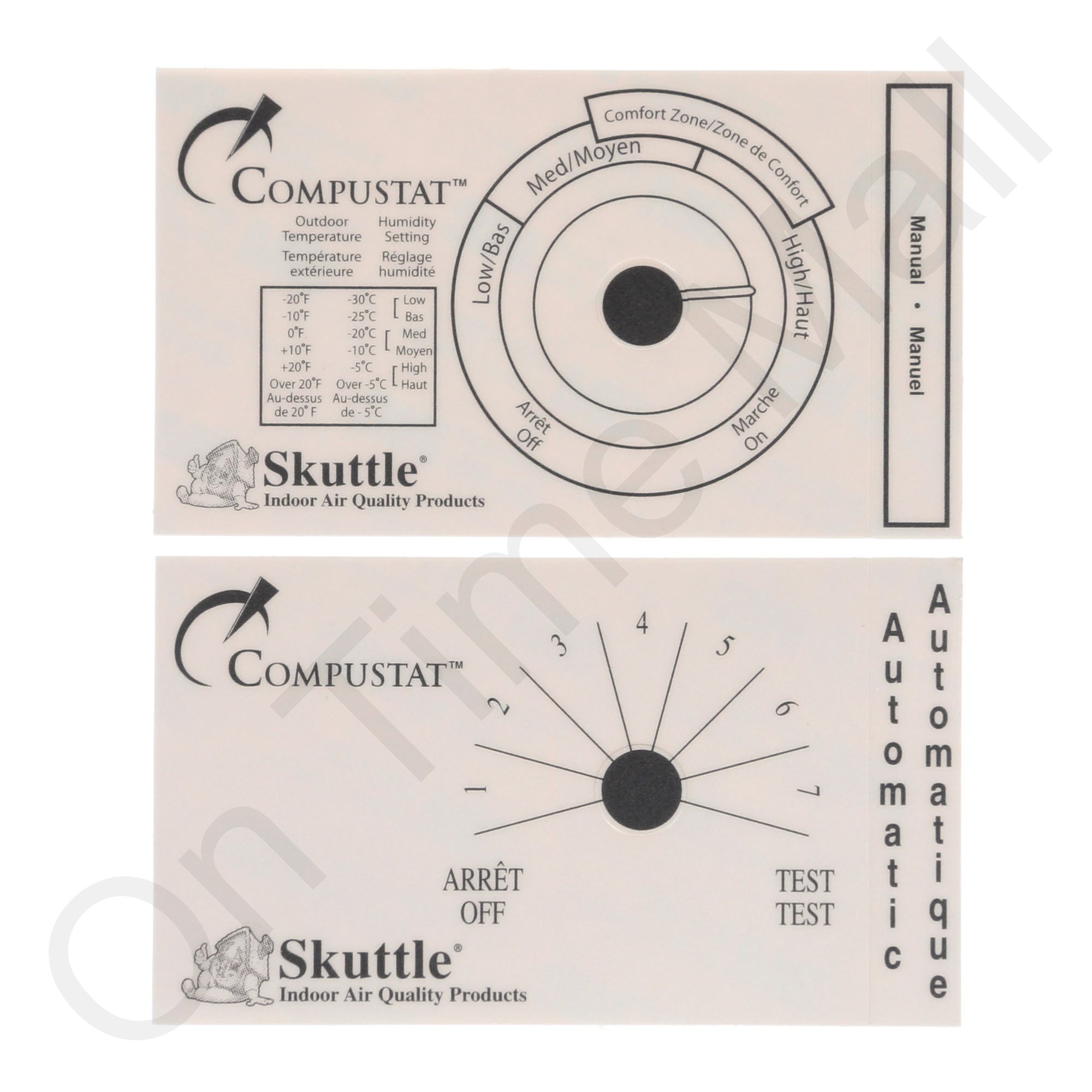 Skuttle SEH-7100-000 automatic humidistat for Skuttle humidifiers. This is a 24-volt duct-mounted humidistat. It is capable of operating in automatic or manual mode. In automatic mode, it uses the included outdoor air temperature sensor to compare the outdoor air temperature to an internal program and automatically raises and lowers the humidity setting of your home based on how cold it is outside. The purpose of this feature is to reduce or eliminate fogging of your windows. It can not be wall-mounted. When installed in manual mode it operates without the use of an outdoor air temperature sensor and keeps the humidity setting to whatever level you set it to. We recommend installing it in the automatic mode since this requires less adjustment all winter long.
